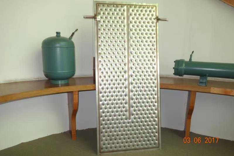 2、在热能采集器中,两种换热介质(中介水与污水)借助水泵的驱动,始终以顺向或反向流动,而且一种换热介质温度是延流动方向升高,另一种换热介质温度延流动的方向降低。由于换热板采用纽扣式波纹且一次冲压成型,使得层与层换向处增加了对换热介质的扰动,两种换热介质始终处于高效换热的紊流状态,温度场的分布也是最均匀的,换热效率高,换热系数高达2336.09W/㎡·K。